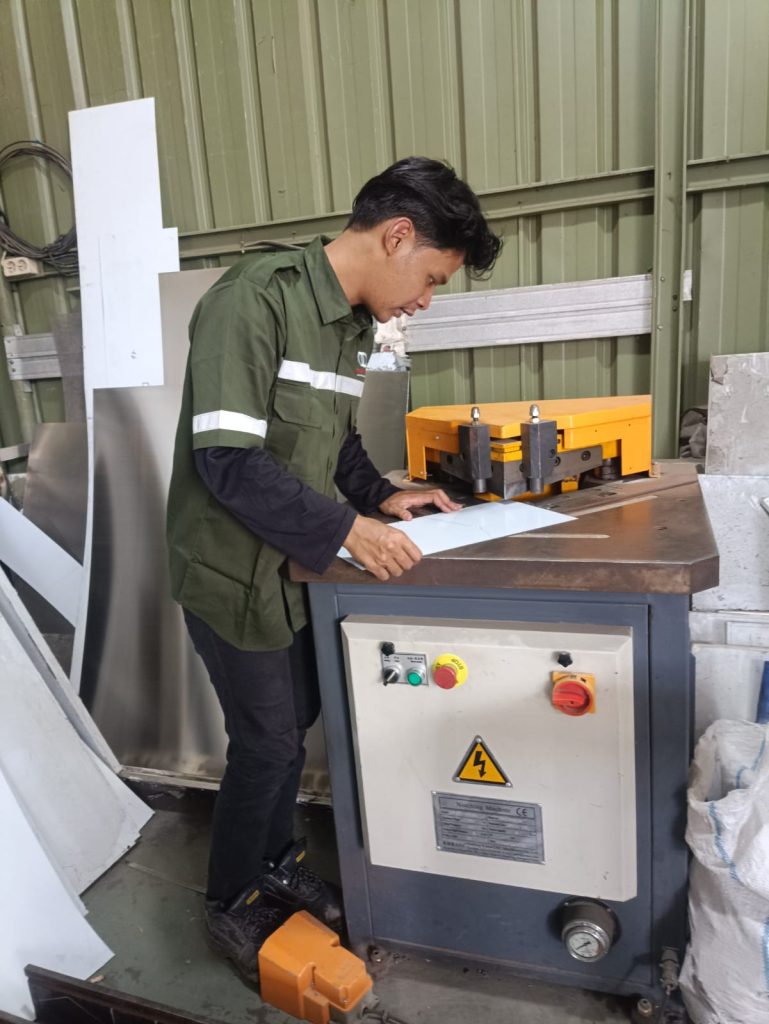 Pemotongan plat dilakukan bedasarkan keinginan atau custom dari pelangggan sesuai kebutuhannya.